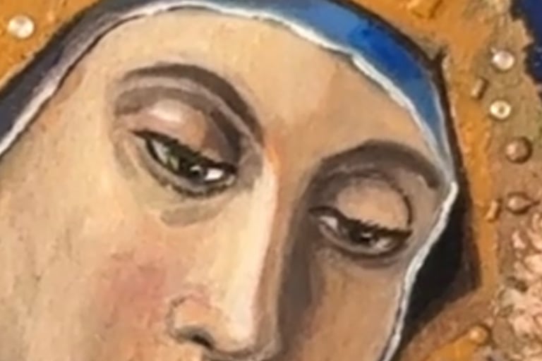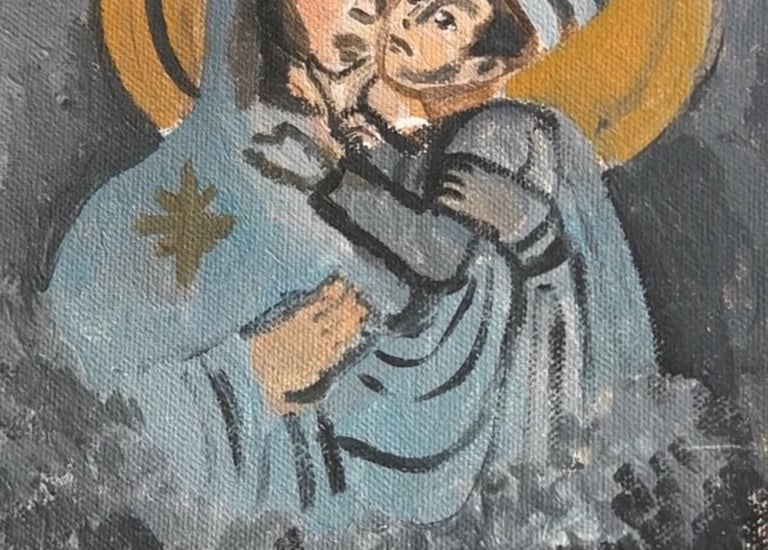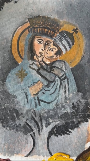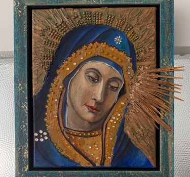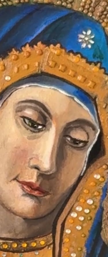 When I painted my icon of Mary, the Mother of God, I chose to depict her not as a passive, silent figure, but as a Primordial Priestess. Look at the ancient ecclesial art—the mosaics where she wears the pallium, the priestly stole. Look at the scriptures where she is the "exalted human" who precedes even the Apostles in her understanding of Christ’s mission. Mary was the mother of God but she never claimed divinity for herself. She was human. Yet, in the icon I painted, she is the depicted as a recapitulation of the primordial goddess tradition...